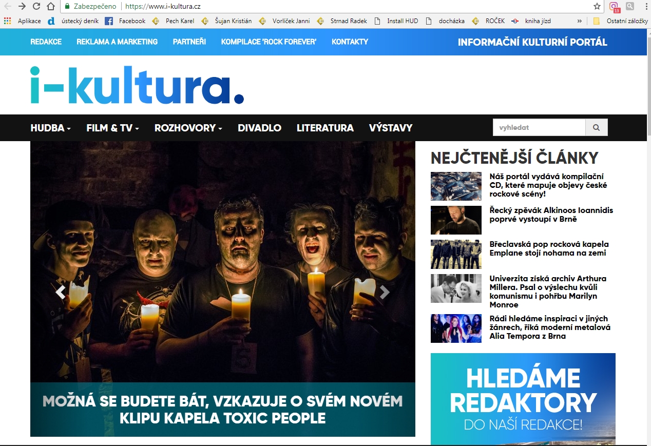 Píše nám šéfredaktor portálu i-kultura Zdeněk Potočník: Ahoj, rozhovor s Toxic People dnes vyšel na portále www.i-kultura.cz a jste rovnou na titulní stránce ![]()